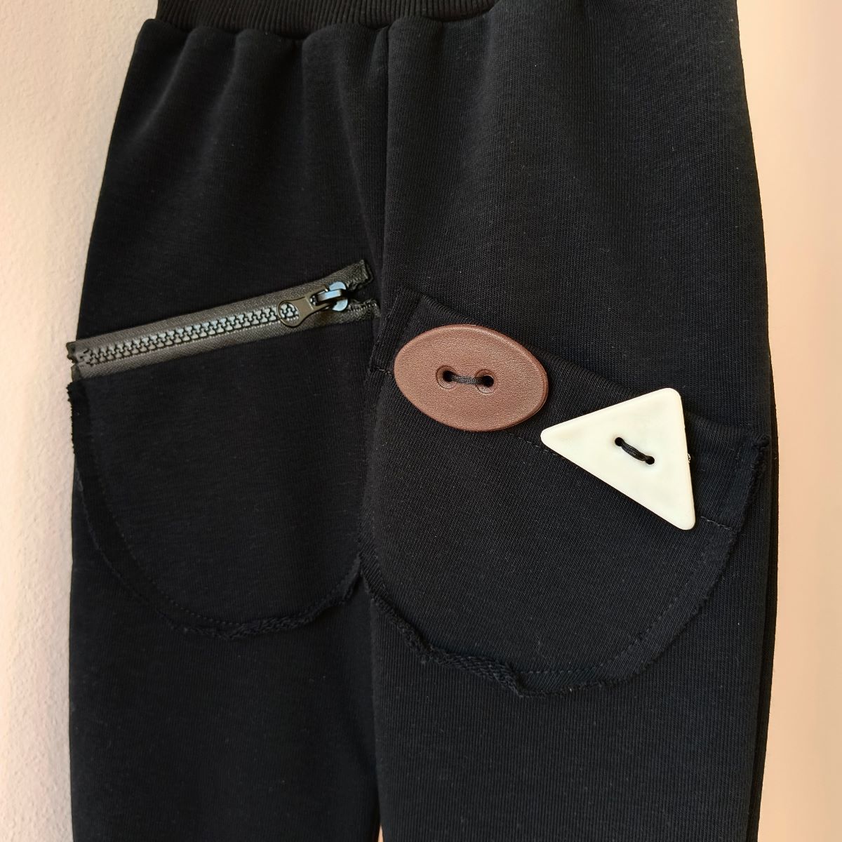 Spodnie do zabawy dla Twojego dziecka! Wygodne i przyjemne w dotyku spodnie z pojemnymi kieszeniami, zapinanymi na zamek i duże guziki.